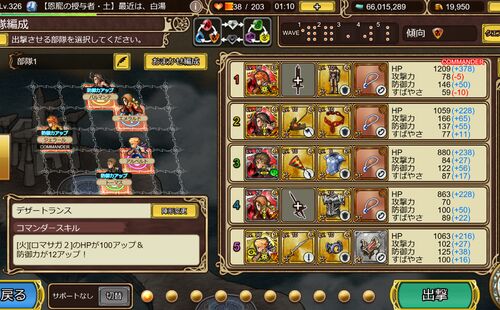 いよいよ、『神々の試練・土』も、大詰めを迎えました。 re9、re10は、それぞれ、次のとおりの編成で、チャレンジしました。 re9 縦範囲攻撃持ちのキャラを中心に部隊編成 デザートランス ①ジェラール レベル98 猛毒のお守り(防+ 状態異常耐性アップ、状…